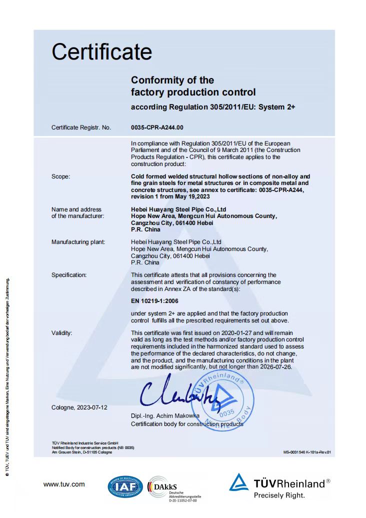 河北華洋鋼管有限公司公司創(chuàng)建于2005年,注冊資金5億元,公司占地面積1000余畝,固定資產12億元,年銷售收入近100億元,現(xiàn)有員工600余人。“華洋牌"高頻直焊鋼管被評為“河北省名牌產品”,年生產能力可達260萬噸,2024年河北華洋鋼管有限公司榮獲河北省百強民營企業(yè)(69位),河北省百強制造業(yè)(57位)榮譽稱號。